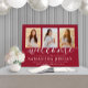 Add a personalized touch to college or high school graduation party decorations with a stylish 3 photo collage 18"x24" foam board welcome sign. The pictures and all wording on this template are simple to customize, and colors are easy to change with the Zazzle design tool. (IMAGE PLACEMENT TIP: An easy way to position a photo is to crop it before uploading to the Zazzle website.) The red and white design features trendy handwritten script calligraphy, chic modern minimalist typography, and three photos of your choice, such as a senior pictures or images from the commencement ceremony. This large graduation party sign is an elegant way to welcome guests to the celebration. Congratulations to the graduate!