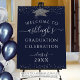 Graduation Party Welcome Navy Blue Silver Glitter Foam Board