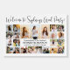 Add a personalized touch to college or high school graduation party decorations with a large photo collage 24"x36" foam board welcome sign. The pictures and all wording on this template are simple to customize, and colors are easy to change with the Zazzle design tool. (IMAGE PLACEMENT TIP: An easy way to position a photo is to crop it before uploading to the Zazzle website.) The modern black and white design features a mortar board cap, trendy handwritten script calligraphy, stylish classic typography, and 23 square photos of your choice, such as senior pictures or images from the commencement ceremony. This large graduation party sign is an elegant way to welcome guests to the celebration. Congratulations to the graduate!