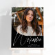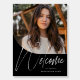 Celebrate your graduate with this modern photo graduation party welcome sign. Featuring a unique photo shape with a curved edge on the front, this black and white graduation sign also has a bold modern script "welcome" and customizable text. This original grad party welcome sign by Lea Delaveris Design is part of a collection of graduation announcements, party supplies, decor, gifts and more. Find more styles and colors in the collection.