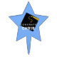 Unique grad party congrats décor, featuring a classic black and gold graduation cap on a light-blue star background. Edit text to add graduate's name.