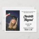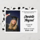 A black and white customizable announcement for a graduation for him or her. Personalize the front of these graduation announcements with the graduate's name and graduation information. The back of the graduation announcement features our design of black graduation caps and mortarboards tossed in the air on a white background.