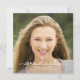 Trendy feminine handwritten script text overlay with with photo - shown on square flat card format. Add your photo and custom text, or choose "Customize It" to add additional information on the back, change the size, font, background color or party invitation layout.