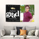 Announce to the world that your favorite grad has reached their milestone with this stunning, simple, modern, personalized photo banner. Bold, graphic, white typography and a faux gold foil cap icon overlay a black background. On the right hand side, add a photo of your choice. Personalize the custom text with your graduate’s name, mascot or school name, and class year. Choose from indoor or outdoor options. Matching invites, thank you cards, cap toppers, fans, napkins, plates and other graduation goodies are also available in this trendy and stylish collection. Guaranteed to preserve cherished memories of their special occasion!