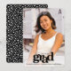 Be proud, rejoice and showcase this milestone of your favorite grad! Send out this stunning, simple, modern, personalized photo announcement for an event to remember. Bold, graphic, black typography overlays a photo of your choice. Personalize the custom text with your grad’s name, school and class year. Matching invites, thank you cards, cap toppers, napkins, plates and other graduation goodies are also available in this trendy and stylish collection. Guaranteed to add stylish fun to their special occasion!