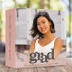 Let your favorite grad be proud, rejoice and showcase their milestone with this stunning keepsake scrapbook custom photo memory album. Bold, graphic, soft gray typography and a soft blush pink gradation overlay a photo of your choice. Personalize the custom text with your grad’s name and class year. White dots overlay a soft blush pink background on the back. Matching invites, thank you cards, cap toppers, napkins, plates, fans and other graduation goodies are also available in this trendy and stylish collection. Guaranteed to preserve cherished memories of their special occasion!
