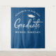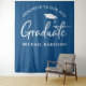 A modern classic blue photo booth backdrop tapestry for his or her graduation party. "Congrats To Our 2023 Graduate" is written in a mix of simple white typography and a large white script. Personalize with his or her name and class year in simple white typography. You can change the colors to your school colors by editing in the design tool.
