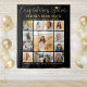 Add an elegant personalized touch to college or high school graduation party decorations with a custom photo collage backdrop. The pictures and all wording on this template are simple to personalize, and colors are easy to change with the Zazzle design tool. The black and gold design features a faux foil graduation cap, trendy handwritten script calligraphy, chic modern minimalist typography, and any favorite photos of your choice, such as senior pictures or images from the commencement ceremony. Please note that gold is printed color, not metallic foil. This large graduation party sign can be hung on a wall to welcome guests to the celebration or used as a fun and stylish photo booth backdrop. Congratulations to the graduate!