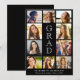 Celebrate your graduate’s milestone moment in style with this modern photo collage black graduation announcement -- a personalized keepsake designed to showcase their journey from first day to graduation day. Featuring a clean grid layout with 10 photos and a bold vertical “GRAD” white typography centerpiece, this announcement blends timeless elegance with contemporary design. Perfect for high school or college graduates.