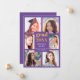 Send your family and friends a modern personalized photo collage graduation card to wow them. This modern template design features six photos for you to change to your own framed in purple. In the center in faux gold and white typography is the word "Grad" with the year, your name and school to personalize. The back of the card is purple. Designed by Susan Coffey.