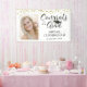 Honor and celebrate your graduate with this photo banner sign personalized with one picture, their name, class year and the title CONGRATS TO OUR GRAD in elegant calligraphy script typography in black on an editable white background accented with a gold confetti border. ASSISTANCE: For help with design modification or personalization, transferring the design to another product or if you would like coordinating items, contact the designer BEFORE ORDERING via the Zazzle Chat MESSAGE tab or email makeitaboutyoustore@gmail.com.