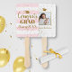 Celebrate your grad, stay cool and save your graduation ceremony seats all at the same time! The front side of this awesome fan features a pink and white stripe pattern accented by faux gold glitter. Add your Grad's class of year. The backside features your grad's photo and name highlighted by festive faux gold glitter confetti. Use to save a row of seats for the big day and also perfect for fanning yourself on a hot graduation day. Assembly required or choose already assembled. Please email colorfulgalshop@gmail.com if you'd like help changing the background color.