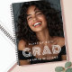 Graduation guest book featuring the graduate's name and year above and below the text "grad" in a fun, modern font as a white overlay over your custom photo.