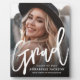 This simple and minimalist graduation easel table top sign or plaque features a full-page photo with a sleek and modern layout. “Grad” is displayed in elegant handwritten script, with the graduate’s name, “Class of 2026,” and the school name below in classic fonts for a clean and polished look.