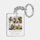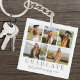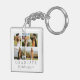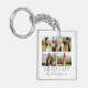This simple and elegant boho-inspired keychain is a perfect way to celebrate a graduate. The design features a space for five photos, with "Graduate" displayed on the top line in a classic serif font. Below, there’s space to add the school name in soft script for a personal touch. The clean white background and soft gray text create a timeless and refined feel. Fully customizable, you can adjust the text, fonts, colors, and photos to make it a meaningful keepsake.
