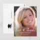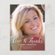 Send an elegant thank you postcard to your family and friends for their graduation gifts to you. This design features your photo on the front with a modern script which reads. "Love & Thanks" in black typography with your name, school, and class/year below to personalize. The back of the card has an illustration of a graduation cap and scroll with a message you may customize. Designed by artist ©Susan Coffey. Photography © Storytree Studios, Stanford, CA.