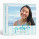 Graduation photo turquoise script white stripes 3 ring binder