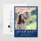 Graduation Photo White Script Royal Blue 2025 Announcement Postcard