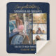 Photo collage gold script graduation party photo blanket for the new grad. Features 4 photos of the graduate, and the word "Congratulations" is set. Add their name, school college, and class year of graduation by clicking the "Personalize" button.