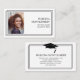 Keep in touch with everyone with these white graduation insert name card with black text and a modern frame. You can place these cards into your graduation announcements or hand them out to teachers and friends. They include your name, school name, and graduation year on the front along with your photo. The back of the card has space to add your name, a phone number, social media information, website address, and anything else you would like to add. Decorated with a black graduation cap/hat. The background color of this card is customizable with Zazzle's design tool, so create your own one-of-a-kind card with your school colors.