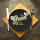 Celebrate the Class of [Year] in style with these cool black and gold graduation party paper plates! Featuring retro typography and a simple minimalist design, these plates add a trendy touch to your high school or college graduation celebration. Perfect for serving snacks, desserts, and party treats, they’re a must-have for your grad party supplies.