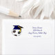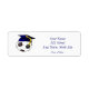 These return address labels are perfect for using on your commencement announcements. They feature a blue graduation cap on a black and white soccer ball. All text is customizable.