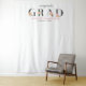 An elegant photo backdrop for a graduation party featuring " congrats grad" in elegant black type decorated with watercolor roses in pink and orange. Personalize with your details.