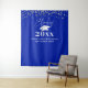 Modern photo backdrop with an editable royal blue background and silver glitter confetti border, handwritten script CLASS OF, white graduation cap or mortarboard and class year personalized with your custom text such as CONGRATULATIONS GRADUATE NAME, the name of your school, a class motto, etc. The background color is editable to change to your school or party theme colors. Use as a photo prop at a high school graduation ceremony, party or school reunion. ASSISTANCE: For help with design modification or personalization, transferring the design to another product or if you would like coordinating items, contact the designer BEFORE ORDERING via the Zazzle Chat MESSAGE tab or email makeitaboutyoustore@gmail.com.