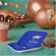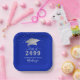 Elegant personalized royal blue and silver graduation party paper plates featuring a faux metallic silver foil graduation cap, silver confetti, fancy calligraphy script typography and class year with CONGRATULATIONS and your graduate's name against an editable royal blue background color you can change to a school color or coordinating party theme color by clicking EDIT. ASSISTANCE: For help with design modification or personalization, color change, transferring the design to another product or you would like coordinating items, contact the designer BEFORE ORDERING via Zazzle Chat or makeitaboutyoustore@gmail.com.