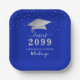 Graduation Royal Blue Silver Confetti Script Paper Plates