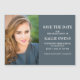Graduation Save the Date magnet card for graduates of the Class of 2022 (or any year) personalized with your photo, name, school name, graduation year, graduation date, and location, along with a message that the formal invitation will be sent later. The customizable background color is an elegant slate blue.