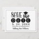 Announce your graduation to your family and friends with this elegant save the date flat card. This design template features a modern typography design in black on white accented by a graduation cap. The front of the postcard reads "Save the Date to attend the graduation of" in a modern script with the date and name for you to personalize.. The back of the postcard has more of your graduation details including a party invitation for you to customize. Congrats on your graduation! Designed by artist ©Susan Coffey.