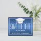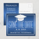 Graduation Save the Date Chic Blue White Grad Cap Announcement Postcard