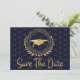 Graduation Save The Date Gold Cap Art Deco Blue