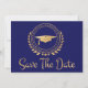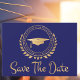 I enjoy designing art work for graduations. This is modern simple and elegant classic gold and blue colored Save the Date announcement card. Modern style text. Add your own message on the back of the cards giving details to your family and friends to save the date for a graduation ceremony, event, party or other occasion. Logo style design includes laurel leaves, stars and a graduation cap.