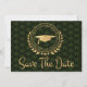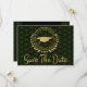 I enjoy designing art work for graduations. This is wonderful and unique art deco style with elegant classic gold, black and green colors. Save the Date announcement card. Modern style text. Add your own message on the back of the cards giving details to your family and friends to save the date for a graduation ceremony, event, party or other occasion. Logo style design includes laurel leaves, stars and a graduation cap. Congratulations to the graduate.