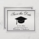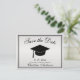 Announce your upcoming graduation in style and have your relatives and friends save the date with this elegant flat card. The design features a faux silver background with the words "Save the Date" in black script. A simple black graduation cap is in the center and below is the date and your name to personalize. The back of the card has more info for you to customize as well. Designed by artist ©Susan Coffey.