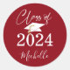 Graduation Script Class of 2024 Red White Classic Round Sticker