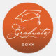 The word Grad in a chic white script along with the class year and a grad cap, these orange 1-1/2" stickers are beautiful envelope seals for your invitations, announcements and thank yous. MATCHING items in our collection.