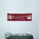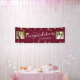 Graduation banner sign with a modern script typography title of CONGRATULATIONS graduate's name and CLASS OF 20XX in white with two photos and a gold star border against an editable maroon background that you can change to coordinate with your school or party theme colors. PHOTO TIP: For fastest/best results, choose a photo with the subject in the middle and/or pre-crop it to a similar shape as shown BEFORE uploading. Contact the designer via Zazzle Chat or makeitaboutyoustore@gmail.com if you'd like this design modified, on another product or would like complementary items.