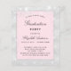 Faux silver metallic and blush pink colored background decorated with faux silver glitter dust. Personalize and add a name and party details. Black colored, elegant script.