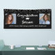 Silver confetti and editable title CONGRATULATIONS (graduate's name) in a handwritten brush script font in white against an editable black background that you can change to coordinate with school or party theme colors by clicking on the CUSTOMIZE FURTHER tab. PHOTO TIP: For fastest/best results, choose a photo with the subject in the middle and/or pre-crop it to a similar shape as shown BEFORE uploading and it will fill the photo space perfectly. Contact the designer if you'd like this design modified, on another product or desire complementary items for your event.