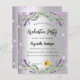 A modern, stylish graduation party invitation. A faux silver looking background with violet faux glitter, sparkles, lavender florals, flowers and eucalyptus greenery. Personalize and add the name and party details.