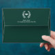 This design features graduation graduate grad party, a classic elegant laureate laurel leaves, a basic 5x7 a7 envelope size, a dark forest green simple minimalist minimal, a traditional mortarboard mortar board, a return address back flap printed, a plain clean simplistic minimalist, a graduation party invitation envelope, a graduation announcement envelope, a dark forest green grad party envelope