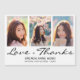 Send a custom photo thank you magnetic card to your family and friends for your graduation. This design template features three of your photos framed in white. Below in black hand lettered script it reads, "Love + Thanks" with your name, school, and year for you to personalize. Designed by artist ©Susan Coffey.