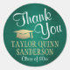 Graduation Thank You Script Brushed Green and Gold Classic Round Sticker