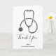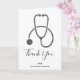 A graduation thank you card with a gray stethoscope placed on a black background. Personalize with a name on the front and a message on the inside. Stylish elegant design.