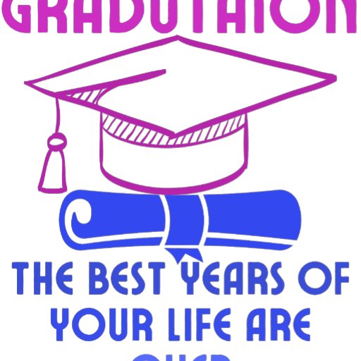 This image is a graduation themed design. It features the word "GRADUATION" in bold, black lettering at the top. Below the word are silhouettes of graduates throwing their caps in the air, with the text "THE BEST YEARS OF YOUR LIFE ARE OVER" written below. The design is a humorous take on the bittersweet feeling of graduating, acknowledging that the best years are over but also suggesting that a new chapter is beginning. The image is simple, yet effective in conveying the message and creating a sense of both nostalgia and excitement for the future.