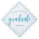 Your favorite grad will stand out and make a statement when she wears this graduation cap topper! Let her celebrate her milestone with this stunning, modern, sparkly turquoise glitter dots and typography script on a white background, tassel topper. Personalize the custom text with your grad’s name and class year. Guaranteed to add stylish fun to her ceremony! Matching invites, thank you cards, napkins, plates and other graduation goodies are also available in this trendy and special collection.