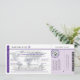 Fun travel themed Graduation Invitation in the style of a Boarding Pass. Trendy colors of GRAY, Purple and Lavender with Gray world map. Has RSVP "cut off card" however YOU NEED TO SUPPLY a 3.5" x 5" mailing envelope. This cut off RSVP card is NOT a self mailer due to the small card size. Check out my shop for other locations. For inquiries about custom design changes by the independent designer please email paula@labellarue.com BEFORE you customize or place an order.